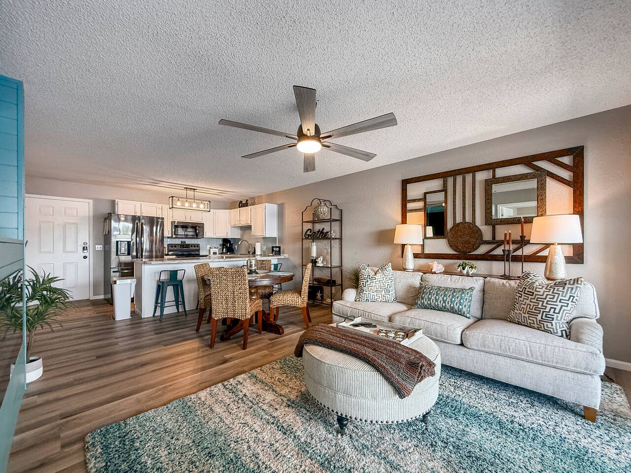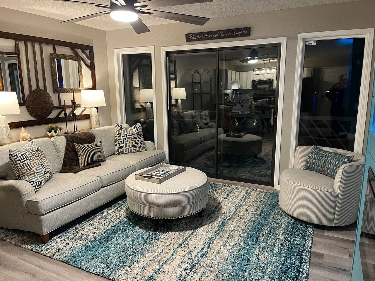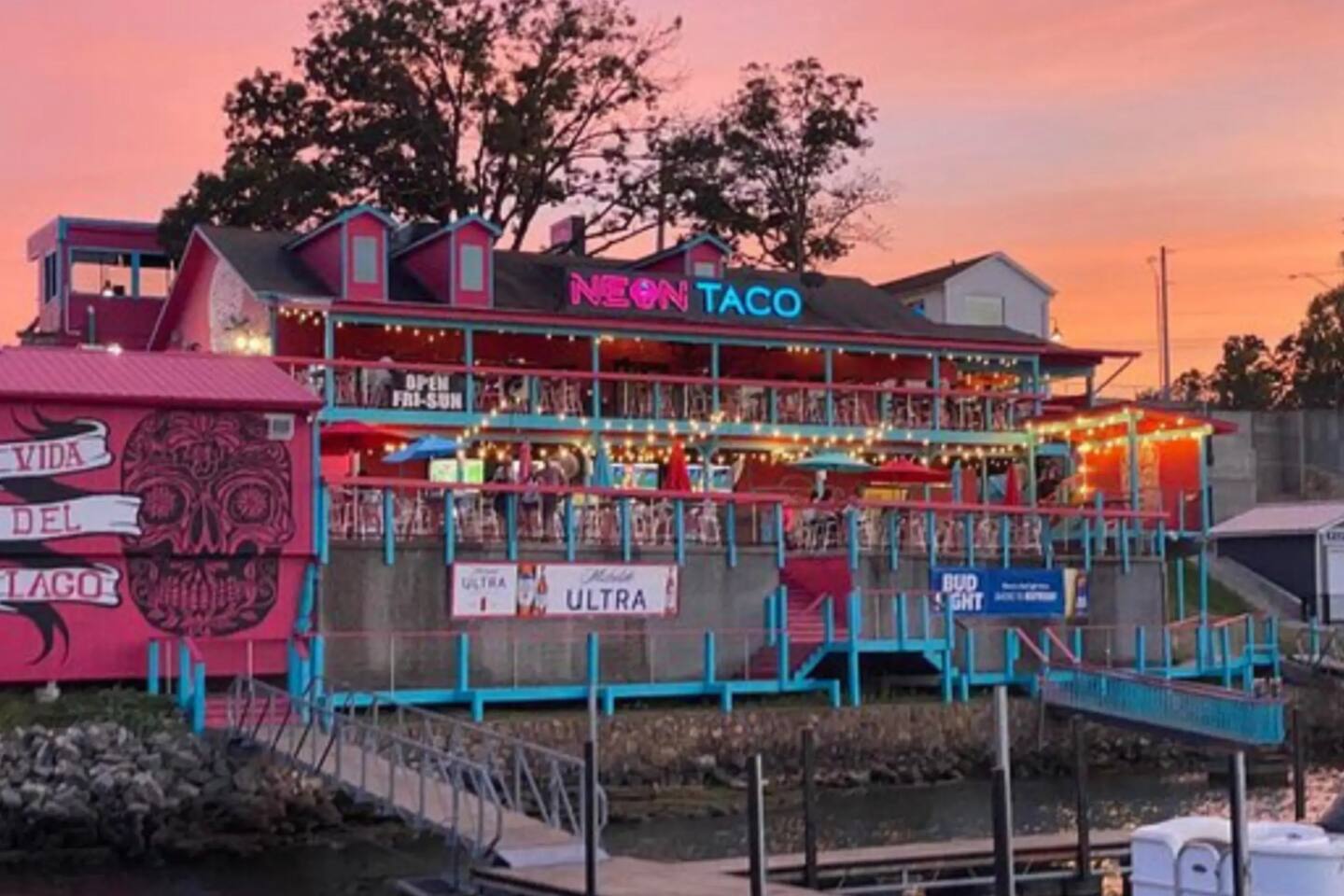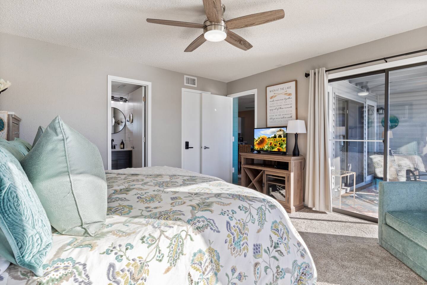 Lakefront*Unobstructed Views*Newly Remodeled*New Furnishings*Covered Patio*Electric Fireplace*Putting Green*65” Smart TV*King & Queen Size Beds*Updated Bathrooms*Easy Access/No Stairs* • Traveling with friends or need more room to spread out? We've got you covered. Just upstairs, we also host a separate 1-bedroom, 1-bath unit with its own shuffleboard, covered patio, and the same incredible lakefront views - perfect for a group trip while still enjoying your own space.