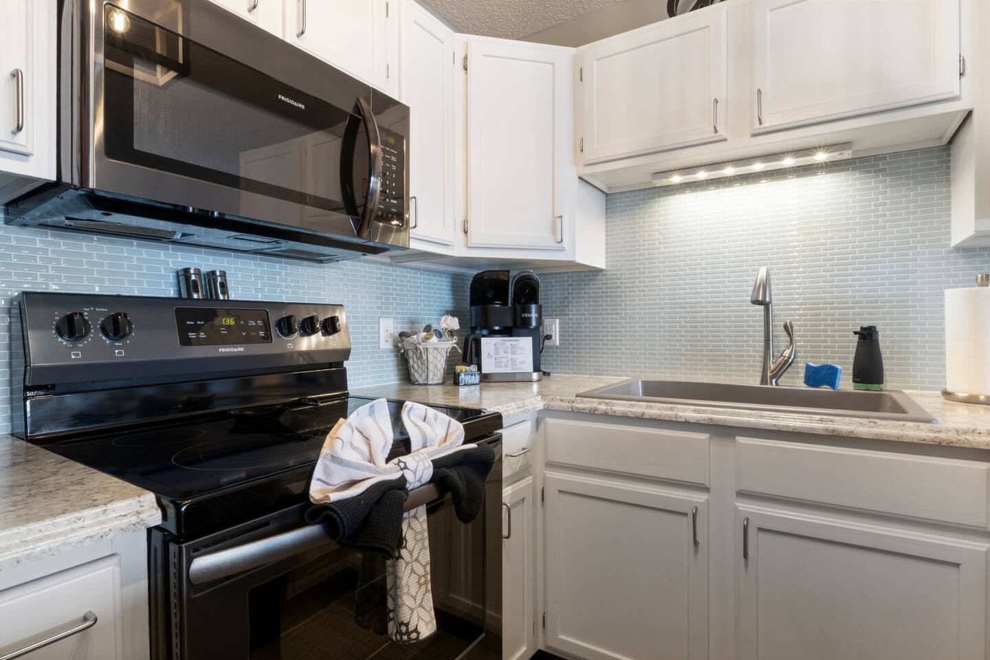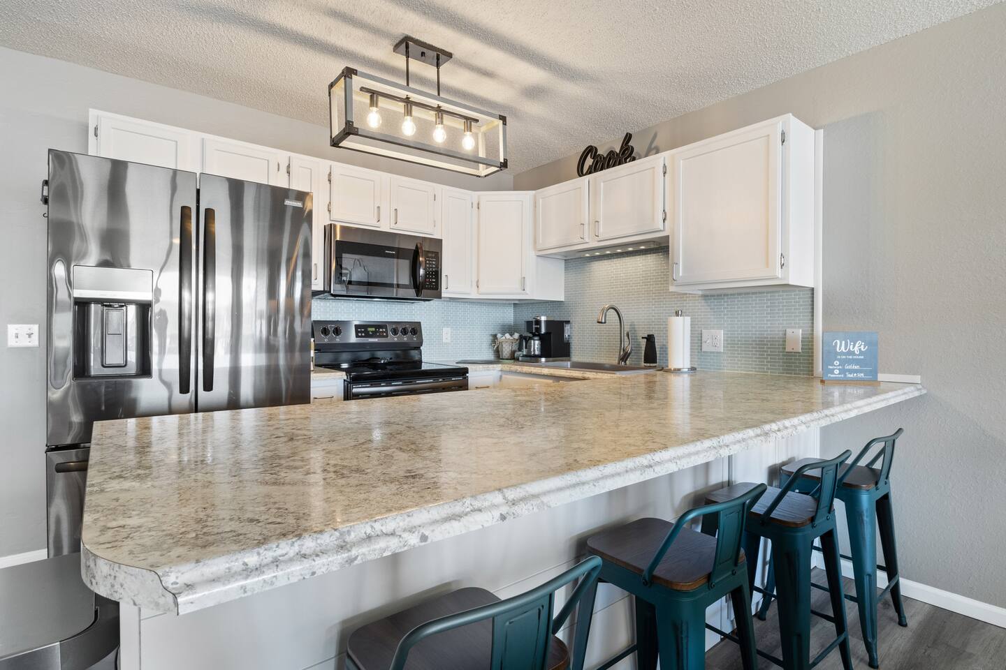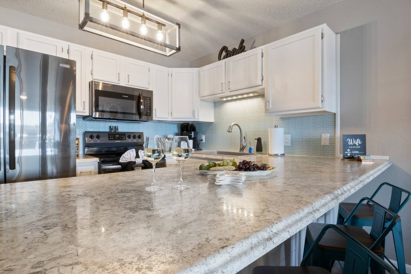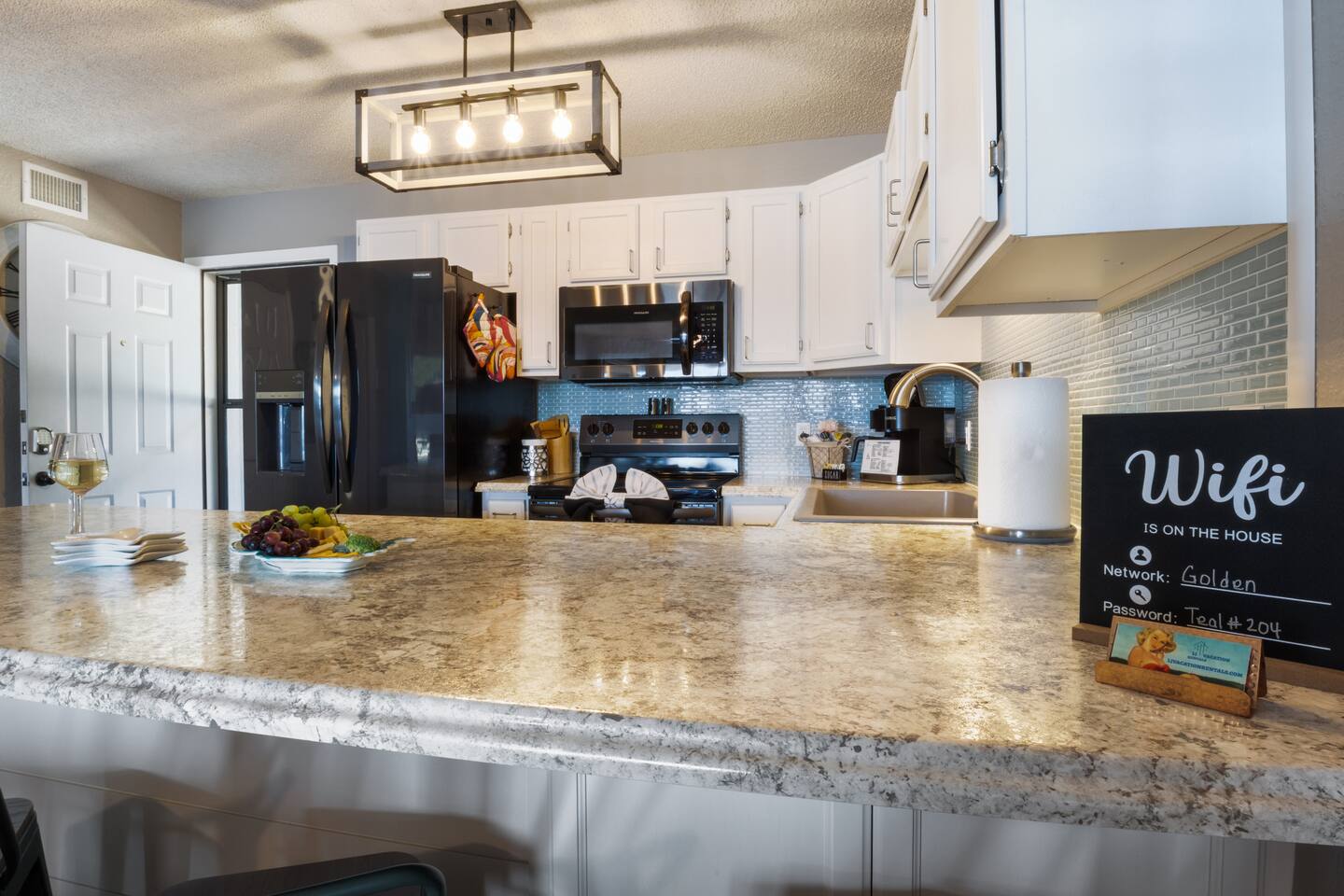We provide complimentary coffee, pod and ground, both regular and decaf, sugar and coffee creamer. We also provide basic seasonings, such as salt, pepper, garlic salt, seasoning salt, olive oil, ensuring you have everything you need to prepare delicious meals. And of course, we've got your personal care covered with shampoo, conditioner, body wash, a selection of bonus toiletries and laundry soap. Pack light and enjoy the convenience of our thoughtfully stocked amenities!