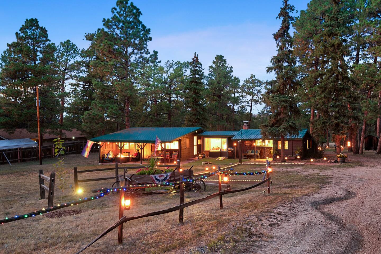 * 14 acres of pasture and forest to explore * Authentic western saloon with saddle bar stools * Hammock garden under the trees *King, queen, and bunk beds * 2 full bathrooms * Fully equipped kitchen and coffee bar * Pet-friendly with a fenced backyard * Rocking chair porch with pasture views * Come make lasting memories at Cowboy Cabin Ranch — where the spirit of the West lives on!