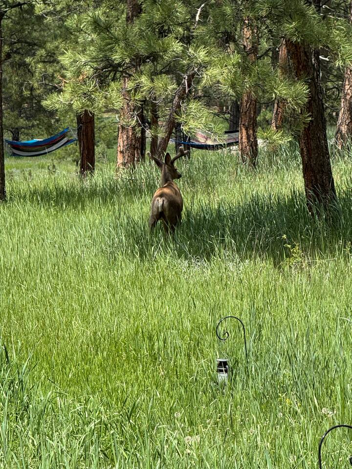 This isn’t just a stay — it’s an experience. From the moment you arrive, you’re welcomed by the timeless charm of the land and the warmth of the cabin’s character. The rocking chair porch invites you to take in wide-open views of the pasture while sipping coffee or watching the wildlife pass by. Elk have recently been spotted in the front pasture, and deer often roam through the hammock garden just a short stroll down the lighted path.