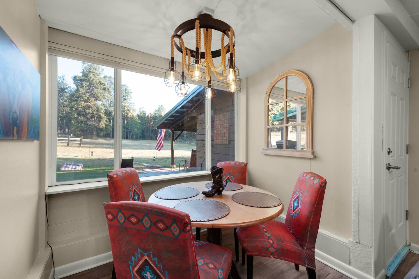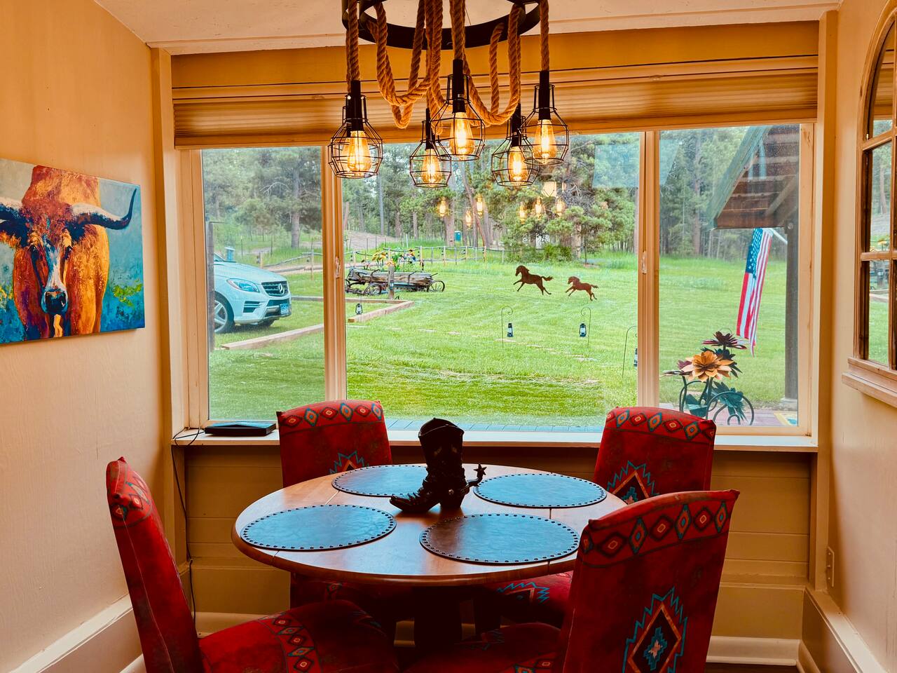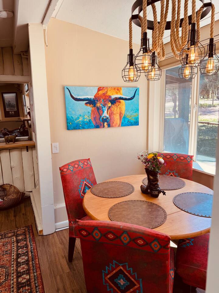 We loved the “ranch” - after our holiday plans changed we were able to rent this beautiful home and enjoy our week together. I’m from Virginia and my son and his family from Colorado Springs and this ranch was perfect! My 7 yo granddaughter enjoyed this home so much - especially the saddle seats! She felt like a cowgirl. The decorations were perfect for the feel of the ranch. Dana couldn’t have been more responsive, kind and accommodating anytime we reached out. We will be back and celebrate another time together. Thank you 💗