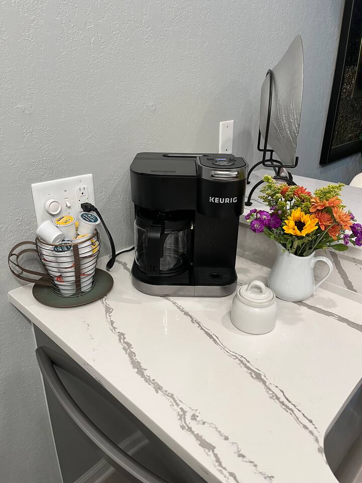 We provide complimentary coffee, in both ground and pod forms, regular and decaf, sugar and coffee creamer. We also provide essential kitchen seasoning like salt, pepper, season salt, and garlic salt, ensuring you have everything you need to prepare delicious meals. And of course, we've got your personal care covered with shampoo, conditioner, body wash, a selection of bonus toiletries and laundry soap. Pack light and enjoy the convenience of our thoughtfully stocked amenities!