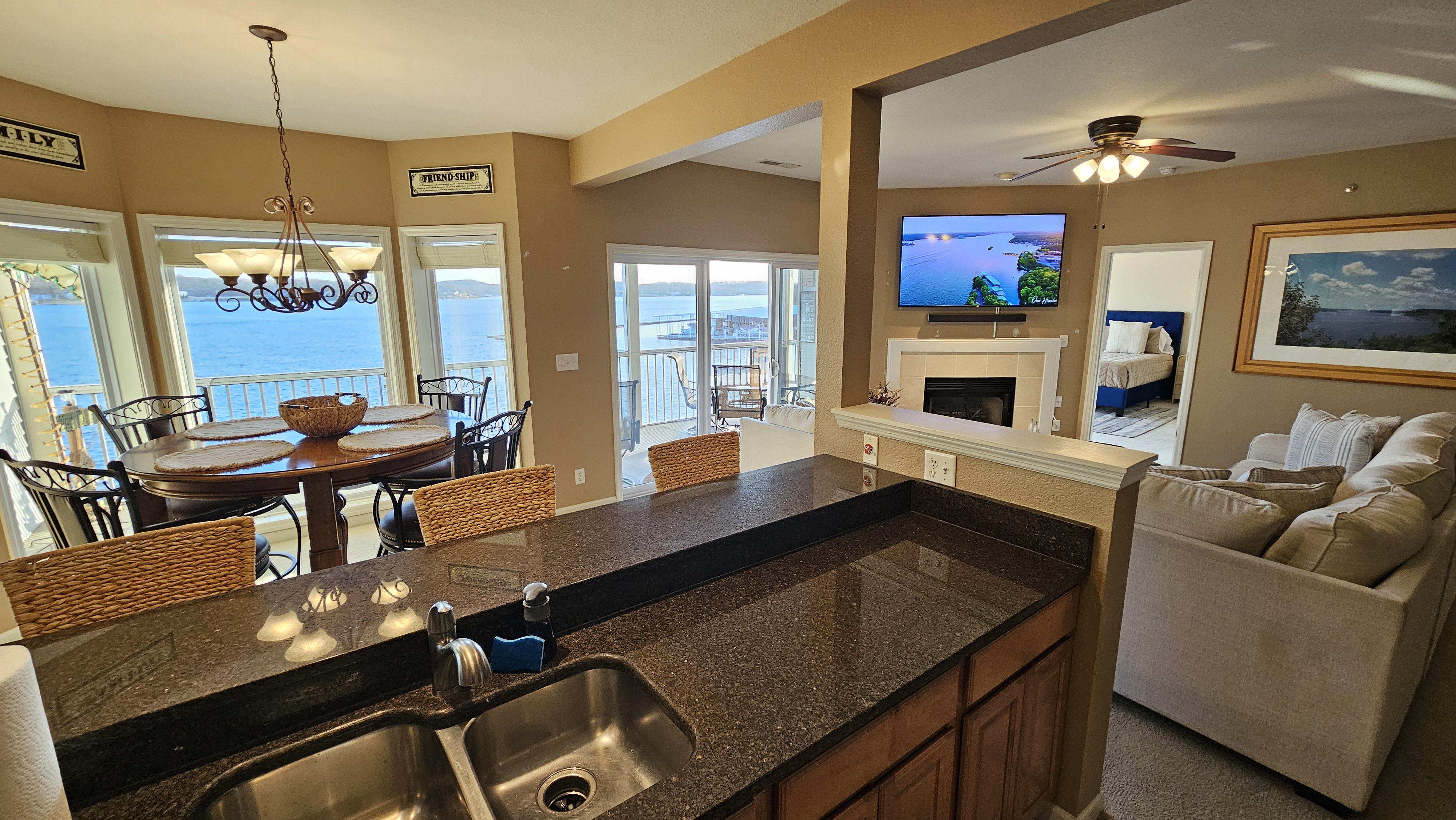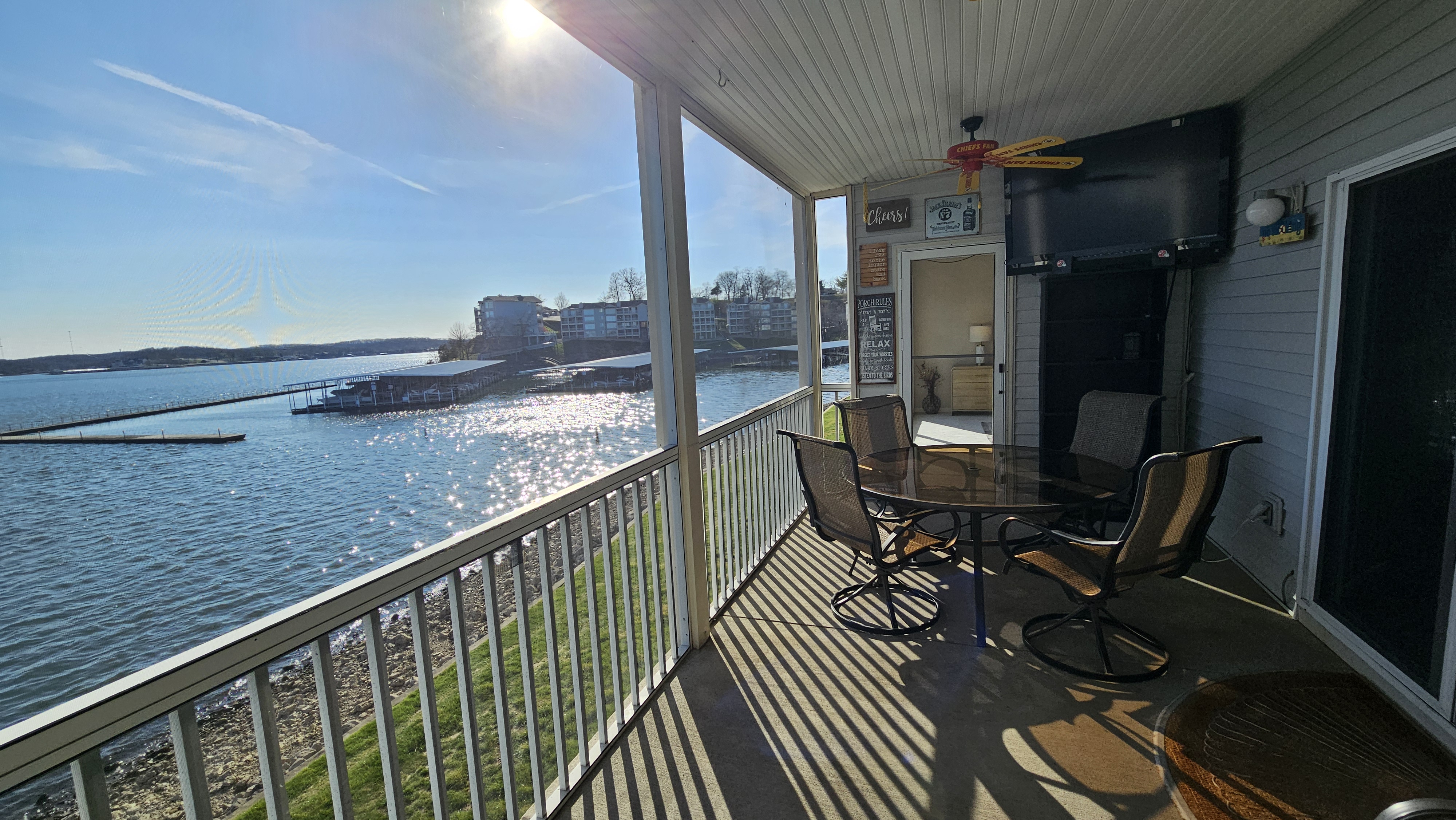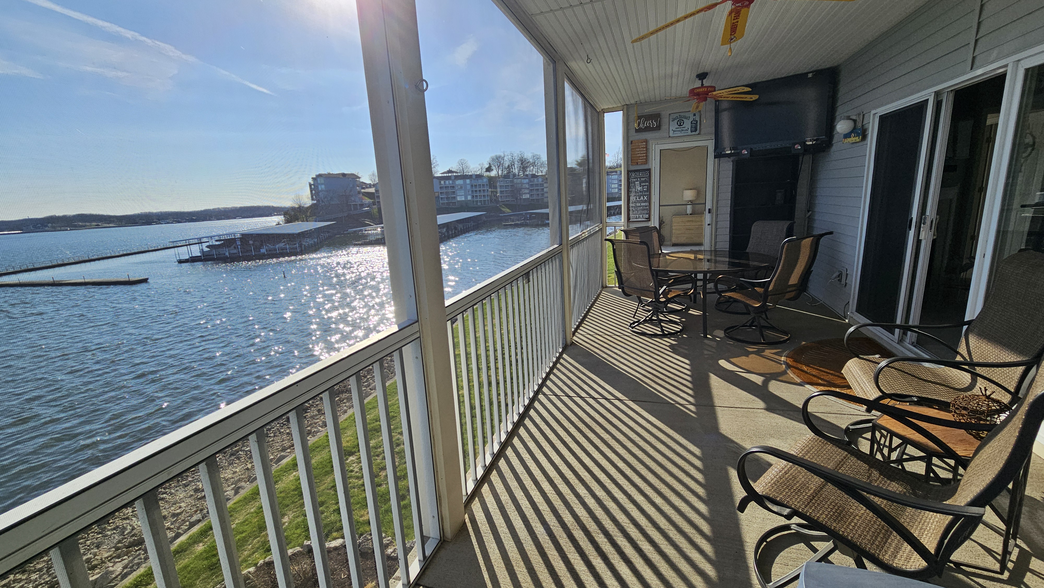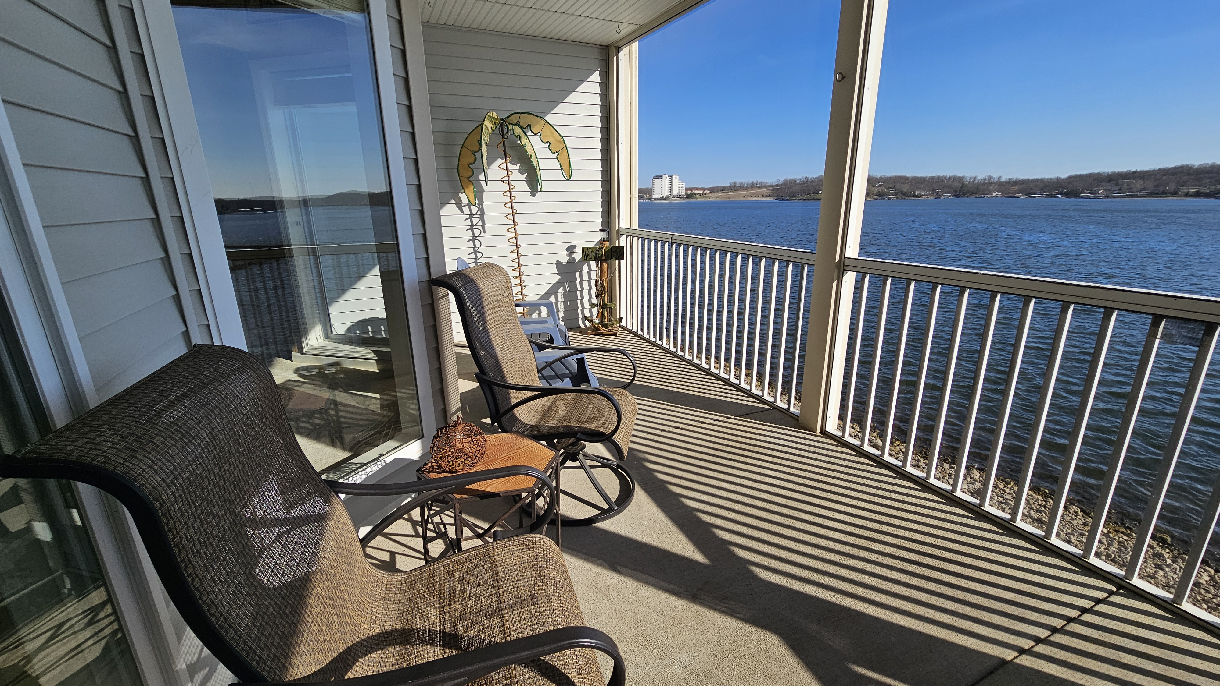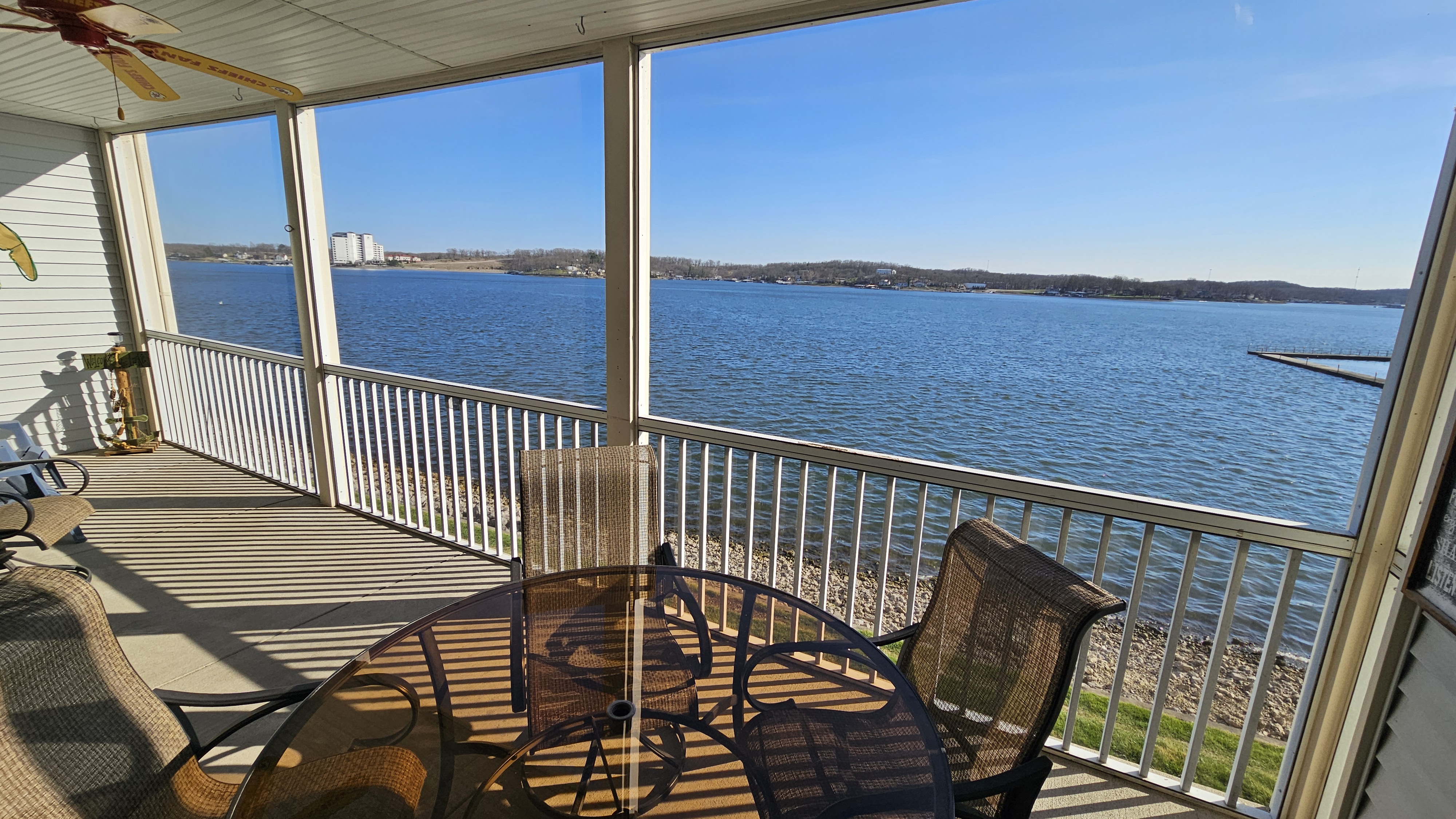 Lakefront@MM 12*Unobstructed Lake Views*Very Spacious Condo-Sleeps 9*Two Step Entry*Screened-in Large Covered Patio w/TV*King Bed*Queen Bed*Two Doubles*Twin Bed*Pools*Pickleball Courts*Basketball Courts*High Speed Internet*Cable TV