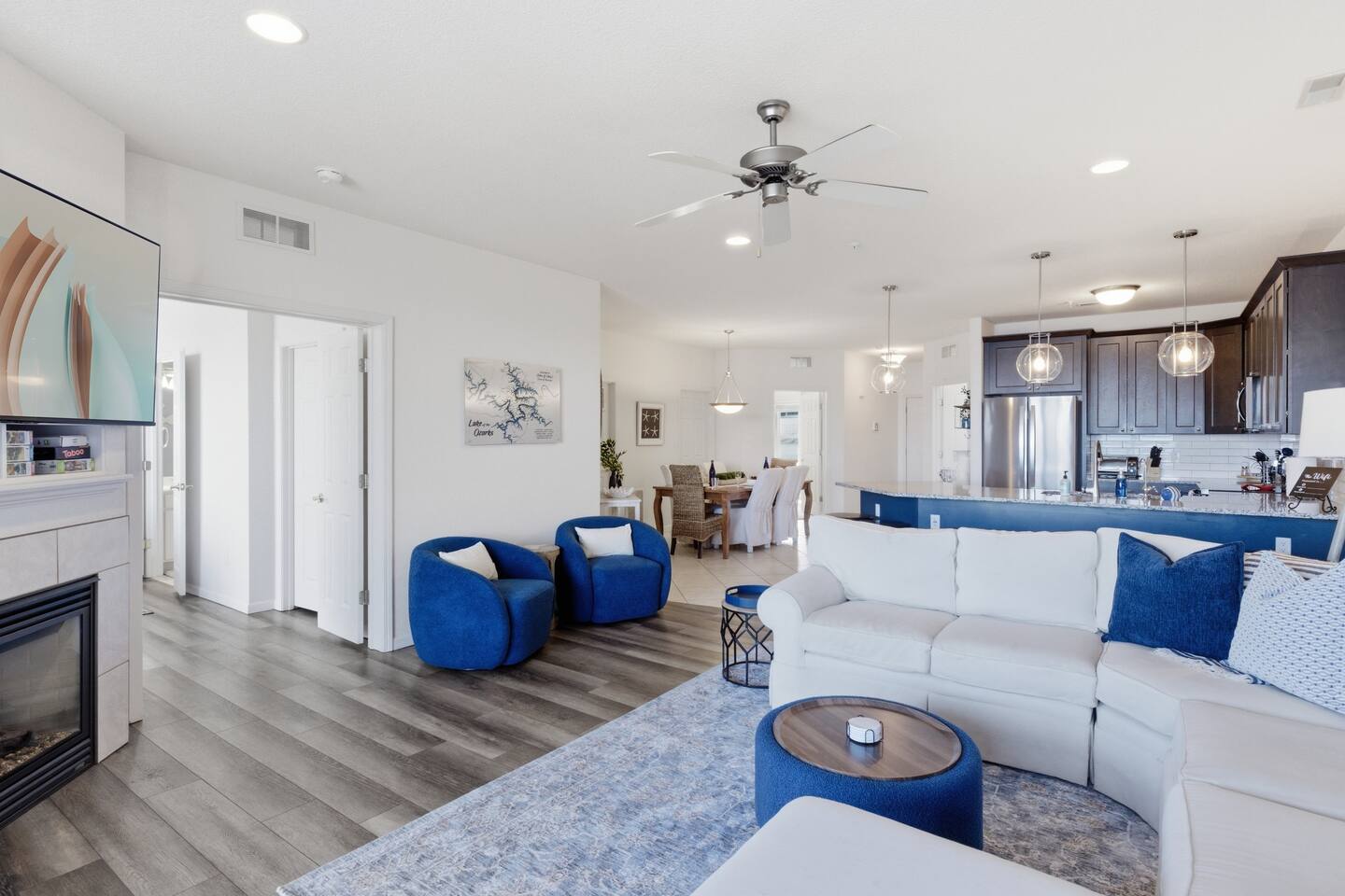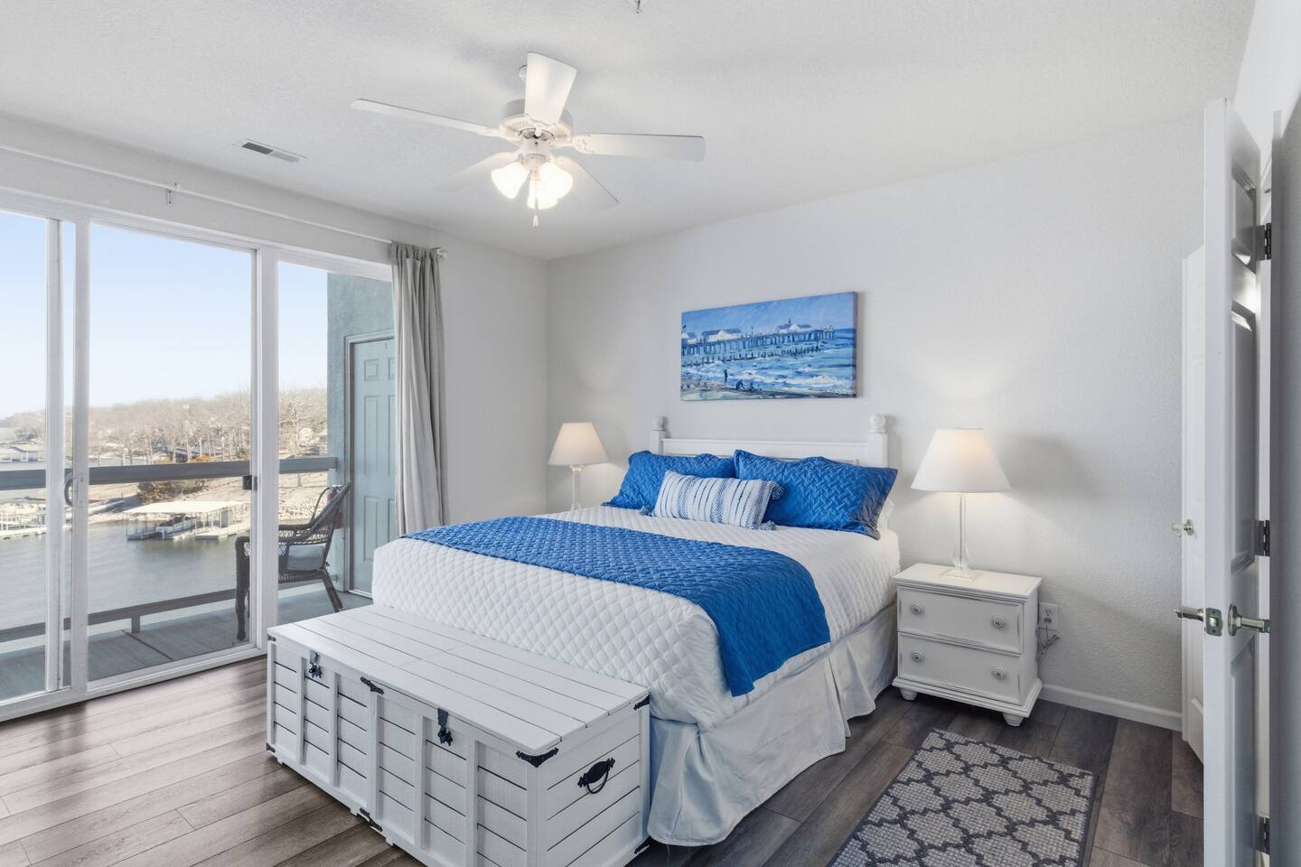 Welcome to Lands End Condominiums and our Piece of Paradise. As you arrive and catch your first glimpse of the water, the lake instantly sets the tone for your stay. The elevator makes unloading easy, and within moments you’re opening the door to what truly feels like your own Piece of Paradise. The first thing you notice is the view. Endless, unobstructed main-channel water stretches across the horizon, drawing you straight through the open-concept great room. The newly updated kitchen shines with brand-new appliances, upgraded lighting, and comfy bar stools that invite you to sit and stay awhile. It’s fully stocked with everything you need to cook for your family, whether that means big breakfasts before the boat or a full dinner spread after sunset. Off to the side, the coffee bar waits patiently — drip or pod, sugar and creamers ready — because mornings at the lake deserve to start slowly. The kitchen flows effortlessly into the dining and living areas, creating a spacious gathering place where everyone naturally comes together. The large couch fills quickly after a day on the water, while two cozy niche chairs offer the perfect spot for quiet conversation. On cooler evenings, the gas fireplace adds a soft glow, and the large TV brings everyone in for movie night. Around the dining table, meals linger a little longer, laughter grows louder, and board games somehow turn competitive before anyone realizes it. When it’s time to unwind, the primary suite feels like a retreat of its own. The king bed faces the same breathtaking water views, and private patio access means you can step outside first thing in the morning or just before bed. The freshly updated ensuite bath offers a walk-in shower, a jetted soaking tub, and dual sinks with plenty of space to settle in and relax. The second bedroom is spacious and welcoming with a queen bed and easy access to a full bath with a shower/tub surround. The third bedroom, with its two twin beds, is charming and inviting — perfect for kids, friends, or anyone who loves having their own cozy corner. Every bedroom has its own TV with cable, giving everyone space to unwind at the end of the day. But it’s the patio that often becomes everyone’s favorite place. The outdoor table fills with morning coffee, afternoon snacks, and dinners fresh off the large gas grill. Boats drift by in the distance. The sky shifts from bright blue to soft pink and gold. You’ll find yourself lingering just a little longer, not quite ready to go back inside. Beyond the condo, Lands End offers resort-style amenities that make your stay even more memorable — a zero-entry pool, lazy river, hot tub, fitness center, clubhouse, playground, and basketball court — all just minutes from the best dining, shopping and some of the best golf courses in Osage Beach and surrounding area. For guests bringing a boat, a slip is available for an additional fee. Please note that trailer parking is not permitted within the complex. Piece of Paradise isn’t just a place to stay. It’s where mornings feel slower, dinners last longer, and lake memories are made effortlessly. Once you’re here, you’ll understand why guests return again and again. PLEASE NOTE: No pets allowed and no smoking of any kind are permitted. A minimum fee of $250 will be applied for violation of these rules.