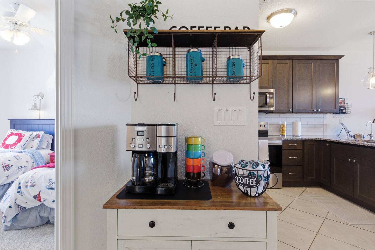 We provide complimentary coffee, pod and ground, both regular and decaf, sugar and coffee creamer. We also provide basic seasonings, such as salt, pepper, garlic salt, seasoning salt, olive oil, ensuring you have everything you need to prepare delicious meals. And of course, we've got your personal care covered with shampoo, conditioner, body wash, a selection of bonus toiletries and laundry soap. Pack light and enjoy the convenience of our thoughtfully stocked amenities! Additionally, please note boat or trailer parking is not permitted on the premises. All vehicles will be towed.
