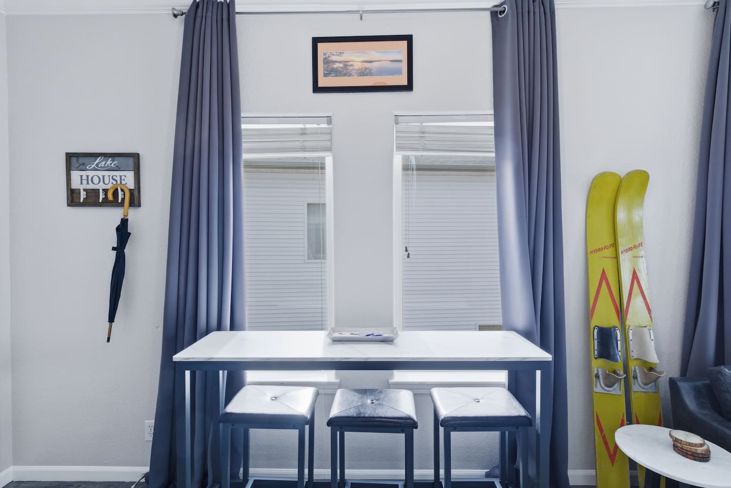 We provide complimentary coffee, pod and ground, both regular and decaf, sugar and coffee creamer. We also provide basic seasonings, such as salt, pepper, garlic salt, seasoning salt, olive oil, ensuring you have everything you need to prepare delicious meals. And of course, we've got your personal care covered with shampoo, conditioner, body wash, a selection of bonus toiletries and laundry soap. Pack light and enjoy the convenience of our thoughtfully stocked amenities! Additionally, please note boat or trailer parking is not permitted on the premises. All vehicles will be towed.